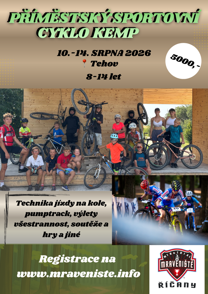 V tehovském volno časovém parku a jeho okolí se bude konat příměstský cyklistický tábor! Každý den od 8:00 do 17:00 čeká děti nabitý program zaměřený na jízdu na horském kole.