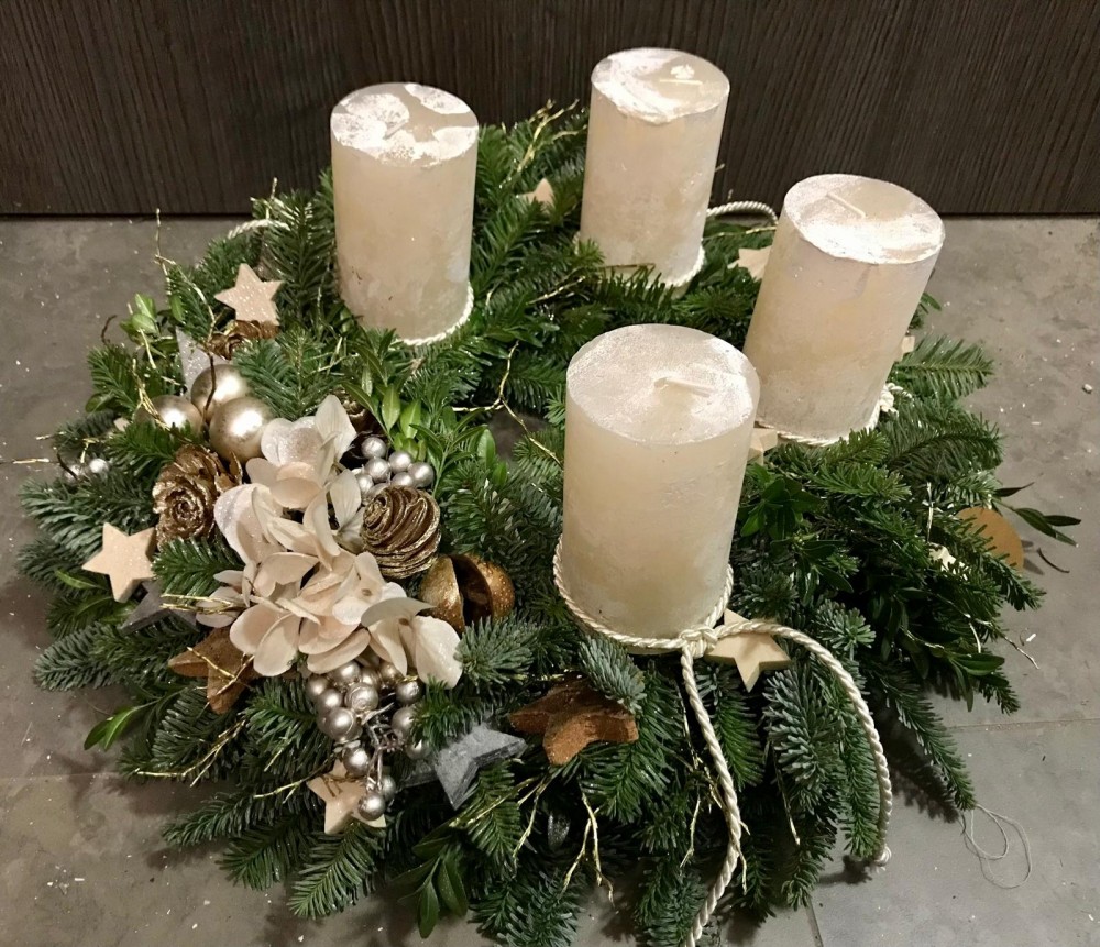 Vytvořte si vlastní adventní věnec o průměru 45 cm, který bude zdobit váš domov po celé sváteční období. Pracovat budeme s kvalitní neopadavou jedlí nobilis, doplněnou o borůvčí, eukalyptus a další zelené větvičky. Z těchto přírodních materiálů si sami uvážete bohatý, huňatý korpus, který následně dozdobíte podle letošních trendů.
